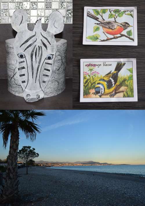 C'est pas le lion, mais le zèbre ! Car cette année, le thème de l'école étant les animaux et ceux de la savane pour notre classe plus particulièrement, j'avais le choix entre girafe ou zèbre pour fabriquer ma couronne des rois. Je l'ai portée hier à la fête des rois et des reines de l'école : nous avions tous préparé des galettes (2 par classe) le matin et l'après-midi nous les avons dégustées tous ensemble lors d'une grande fête où nous avons défilé et dansé avec nos œuvres sur la tête. C'était vraiment chouette ! A part ça, j'ai obtenu vendredi dernier mon deuxième « bon point » ! J'en suis donc à deux images, plus qu'une avant la surprise... Et pour cela, il va falloir obtenir un bonhomme vert à chaque fin des trois prochaines semaines. Sinon lundi dernier, j’avais manqué l'école car j'étais malade et finalement ça « tombait bien » parce que ma maîtresse était aussi absente et non remplacée. Le lendemain, le docteur nous apprenait qu'il s'agissait d'une laryngite (qui peine à partir car même après mon traitement, je me la traîne encore... Aurais-je chopé un autre truc là-dessus...?), encore une... Cette visite nous a permis de voir avec lui pour cette histoire de pieds plats (je sais pas si vous vous rappelez mais il avait remarqué ce petit défaut il y a quelque temps et nous avait dit de lui en reparler après mes 4 ans et demi) et c'est super car ça s'est atténué et je n'ai donc pas besoin de semelles pour l’instant. Et puis, on en a profité pour me mesurer et me peser et mes nouvelles mensurations sont donc : 110 cm et 21 kg. Enfin dernière chose, on était à Vence samedi dernier chez Taty Émilie et Tonton La iath, avec Mamy (qui est d'ailleurs restée là-bas pour une dizaine de jours). On a fêté l'anniversaire de Lana et je me suis ensuite bien amusé avec Soan lors d'une balade au bord de mer. J'ai même fait une crise en repartant tellement je voulais plus rentrer !!! |